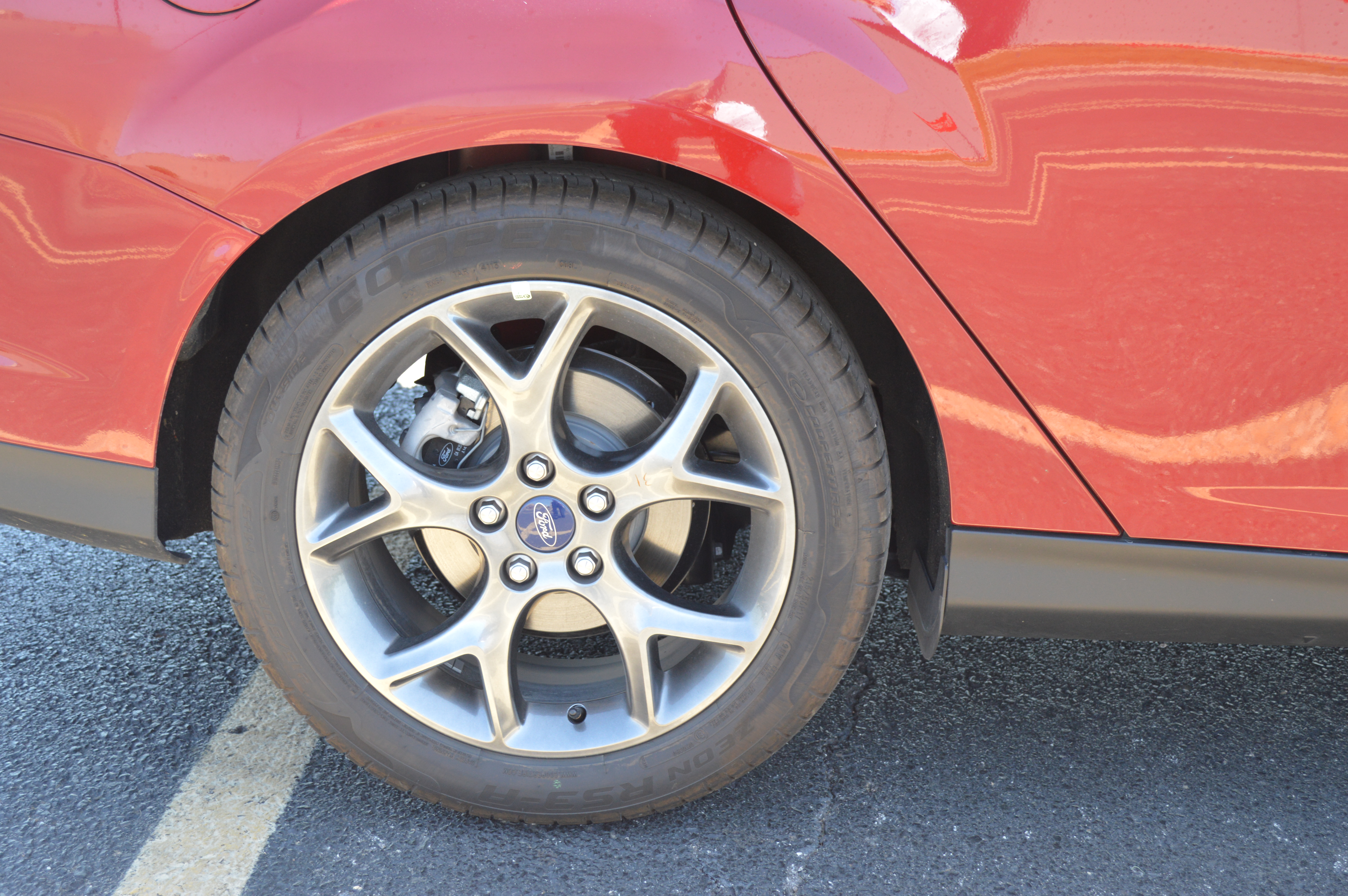 Construção, acabamento e conforto – O Focus tem carroceria bem construída e estrutura bastante rígida. Materiais de boa qualidade e bem encaixados causam boa impressão aos passageiros. As belas rodas de aro 17″ e os pneus Cooper 215, formam belo e eficiente conjunto. Como já comentei, o pequeno botão de acionamento da troca manual de marchas é o único destaque negativo que salta aos olhos. O projetista conhecia bem os conceitos de design, mas nada de condução de carros, a funcionalidade é péssima!