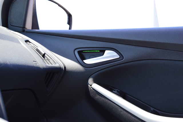 O acabamento interno é bom, com bancos de couro e muitas firulas eletrônicas, com destaque para os muitos spots de led distribuídos em pontos estratégicos para motorista e passageiro. Eles mudam de cor conforme a situação, um charme a parte! Pés, maçaneta e porta-objetos são iluminados em verde tênue com o carro andando. Ao abrir a porta, os leds ficam vermelhos. Com o carro parado e portas fechadas, eles iluminam em azul bem intenso.