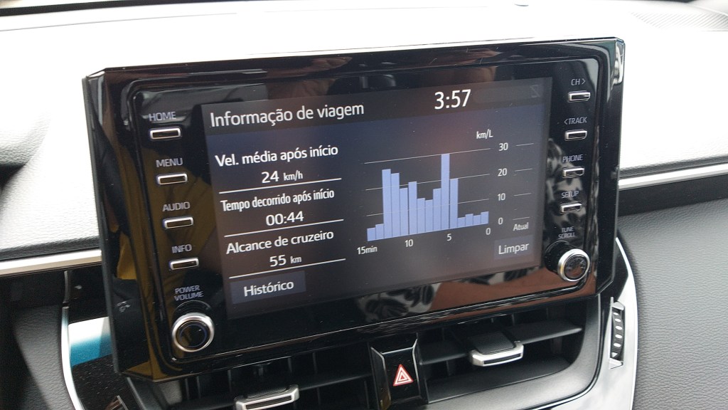 O computador de bordo conta com um sistema de monitoramento do consumo, fácil de visualizar, ele faz um gráfico de barras colocando sequencialmente o consumo a cada minuto do trajeto, além de uma barra com o consumo instantâneo. Ao desligar o carro, um resumo é apresentado no painel principal.